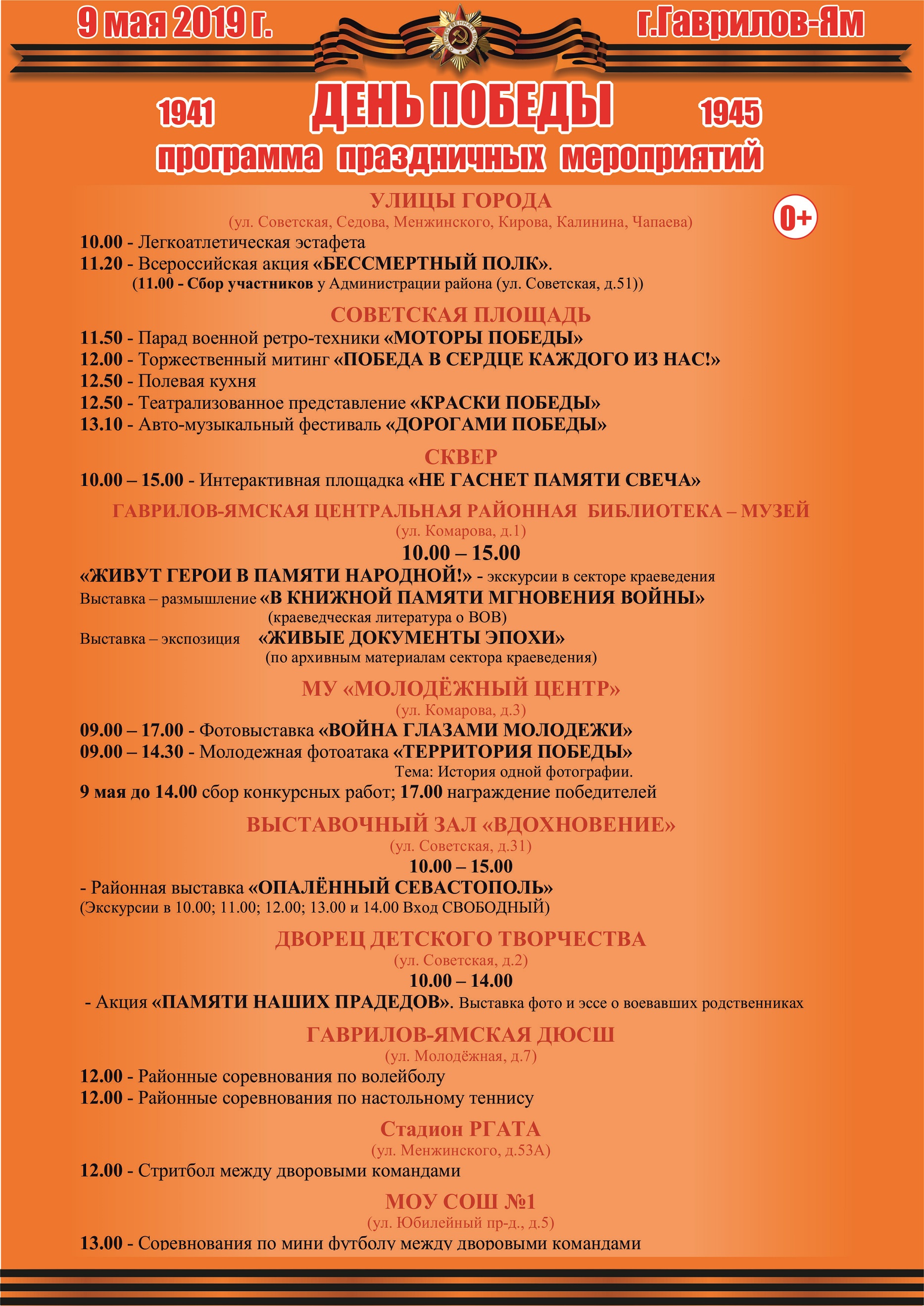 ПРОГРАММА ТОРЖЕСТВЕННЫХ МЕРОПРИЯТИЙ, ПОСВЯЩЕННЫЕ ДНЮ ПОБЕДЫ В ВЕЛИКОЙ ОТЕЧЕСТВЕННОЙ ВОЙНЕ 1941-1945 ГОДОВ