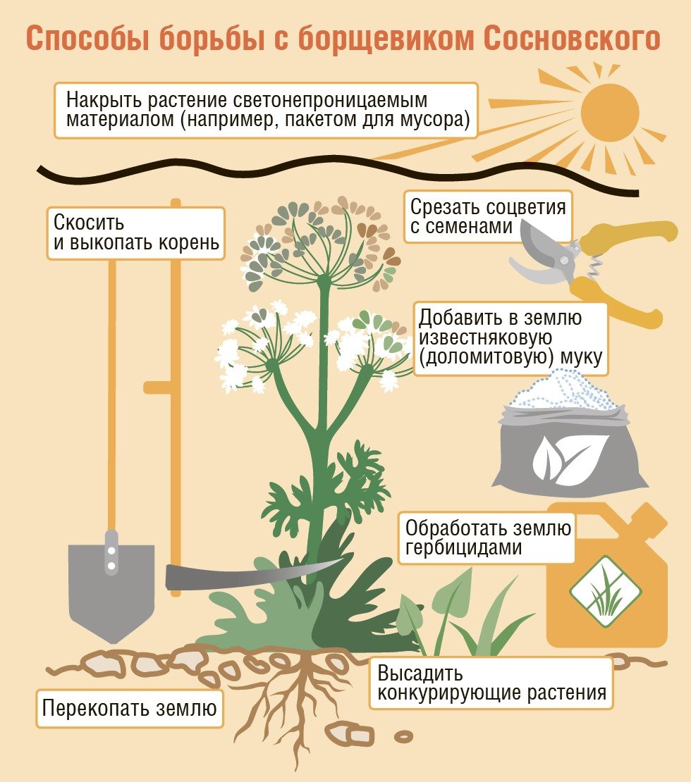 Сельское хозяйствоБорщевик - относится к семейству зонтичных, насчитывает около 70 видов. В нашей стране растет несколько из них, и опасны они для человека в разной степени. Наибольшее распространение получил борщевик Сосновского, завезенный после второй мировой войны с Кавказа, который распространился в средней полосе России повсеместно и превратился в природное бедствие, образовав местами заросли. Борщевик растет на лугах, опушках, вдоль дорог. В высоту достигает 2.5-3 метра, имеет полный стебель, большие листья и белые цветки собранные в зонтик. Наибольшую опасность борщевик представляет в летнее время. Сильная аллергия может быть вызвана запахом, пыльцой и соком ядовитого растения, известны случаи, когда люди получали токсические отравления. Содержащиеся в растении кумарин и эфирные масла способствуют образованию ожогов при прикосновении. Особенно опасен в период цветения (июнь- июль) и в начале созревания (август)! ОПАСНОСТЬ БОРЩЕВИКА : Опасным борщевик делают ядовитые вещества, которые он выделяет в атмосферу. Листья борщевика богаты эфирными маслами. Прикосновение к растению может вызывать раздражение и ожог кожи за счёт того, что все части растений содержат фуранокумарины — вещества, резко повышающие чувствительность организма к ультрафиолетовому излучению. Самые сильные ожоги борщевик вызывает, соприкасаясь с кожными покровами в ясные солнечные дни. Чтобы получить ожог, достаточно и непродолжительного и несильного облучения солнцем участка кожи, испачканного соком растения. На поражённых участках кожи возникает ожог второй степени (волдыри, заполненные жидкостью). Особая опасность заключается в том, что прикосновение к растению первое время не дает никаких неприятных ощущений. Реакция от контакта с борщевиком проявляется не сразу, а по прошествии некоторого времени – от нескольких часов до нескольких суток. Является контактным и дыхательным аллергеном и имеет сильный запах, который ощущается уже в пяти метрах от растения (распухает гортань). Будьте внимательны во время прогулки! Особенно опасно контактировать с БОРЩЕВИКОМ в солнечную погоду. ПРИЗНАКИ КОНТАКТА С БОРЩЕВИКОМ -Сильное покраснение; -Жжение и легкий зуд травмированного участка; -Покраснение сменяется увеличивающимися волдырями, внутри которых находится прозрачная жидкость; - может повыситься температура тела; -возможно общее легкое недомогание. - травма от контакта с борщевиком похожа на стандартный ожог второй степени НЕМЕДЛЕННО ОБРАТИТЬСЯ ЗА ПОМОЩЬЮ! ПЕРВАЯ ПОМОЩЬ ПРИ КОНТАКТЕ С БОРЩЕВИКОМ Если вы все же прикоснулись к любой части борщевика, то сразу после контакта с ним необходимо: -защитить пораженные участки от солнечных лучей; -тщательно промыть пораженные места водой с мылом; -если ожог затронул глаза, рот или другие слизистые оболочки, немедленно промыть; -к врачу обращаться нужно настолько срочно, насколько это возможно; -наложить повязку (непроницаемую для света, желательно светлую). УВАЖАЕМЫЕ РОДИТЕЛИ, ПОМНИТЕ! -Борщевик относится к ядовитым лекарственным растениям, может вызывать воспаление кожи, сходное с солнечным ожогом. -Поражения соком и пыльцой растения могут образоваться не только при контакте незащищенной кожи с ним, но и через одежду. -Выезжая на природу, необходимо обезопасить себя и своих детей от возможной неприят